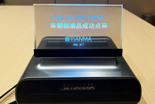 近日,天馬新型顯示技術(shù)研究院(廈門)有限公司,繼全球領(lǐng)先的G3.5 Micro-LED產(chǎn)線全制程貫通后,首款車載標(biāo)準(zhǔn)化產(chǎn)品——Micro-LED 7英寸車載標(biāo)準(zhǔn)品成功點(diǎn)亮!這款產(chǎn)品集高透明度、可拼接、高